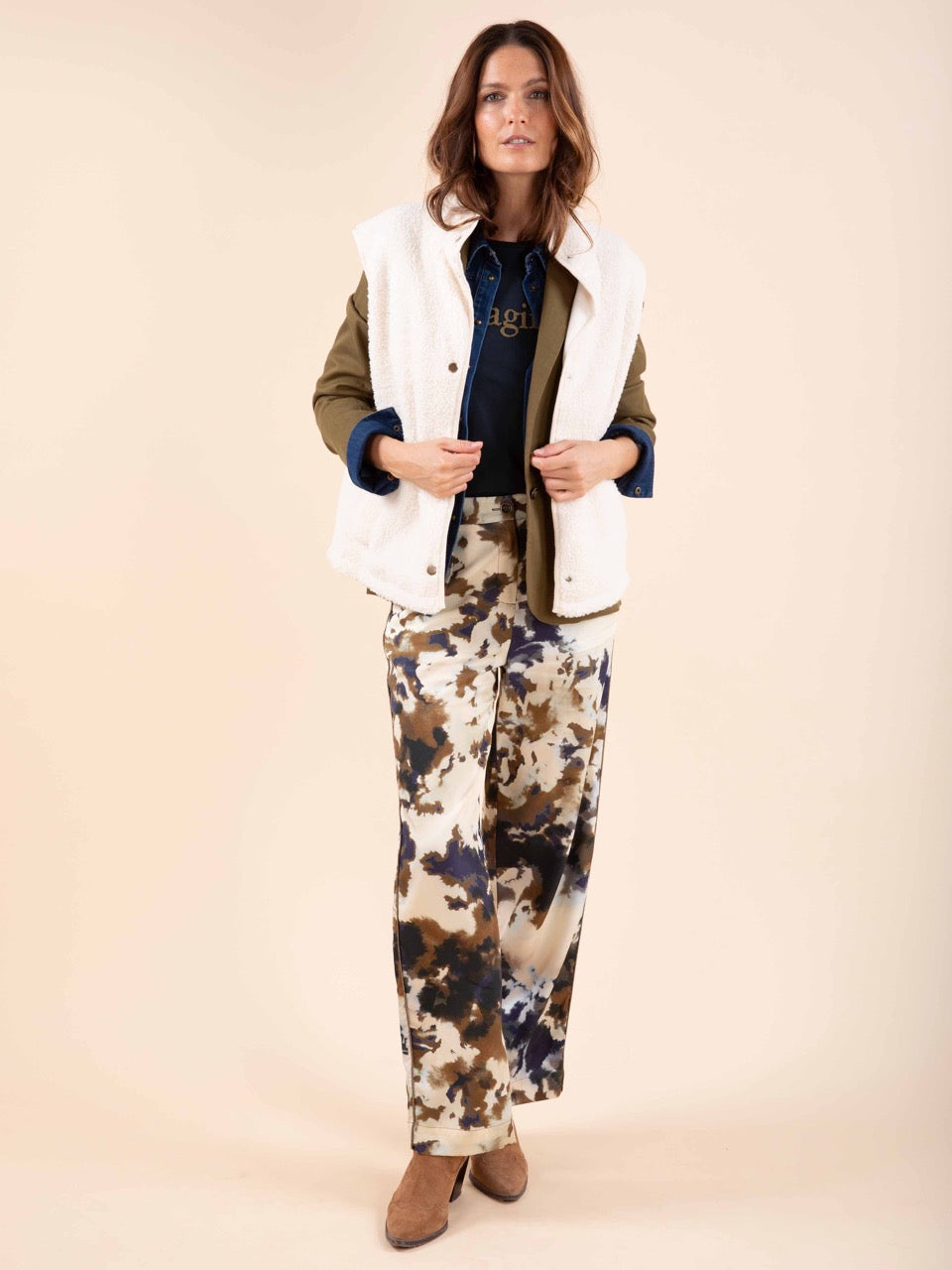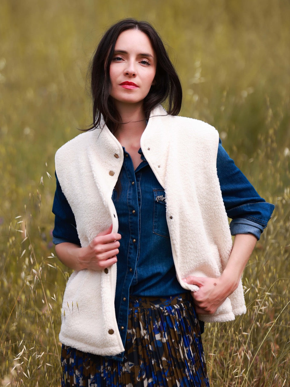 Verlieben Sie sich in diese wendbare, ärmellose Jacke, die mit ihrem Wechselspiel zwischen glattem Fleece und Bouclé sowohl gemütlich als auch stilvoll ist.