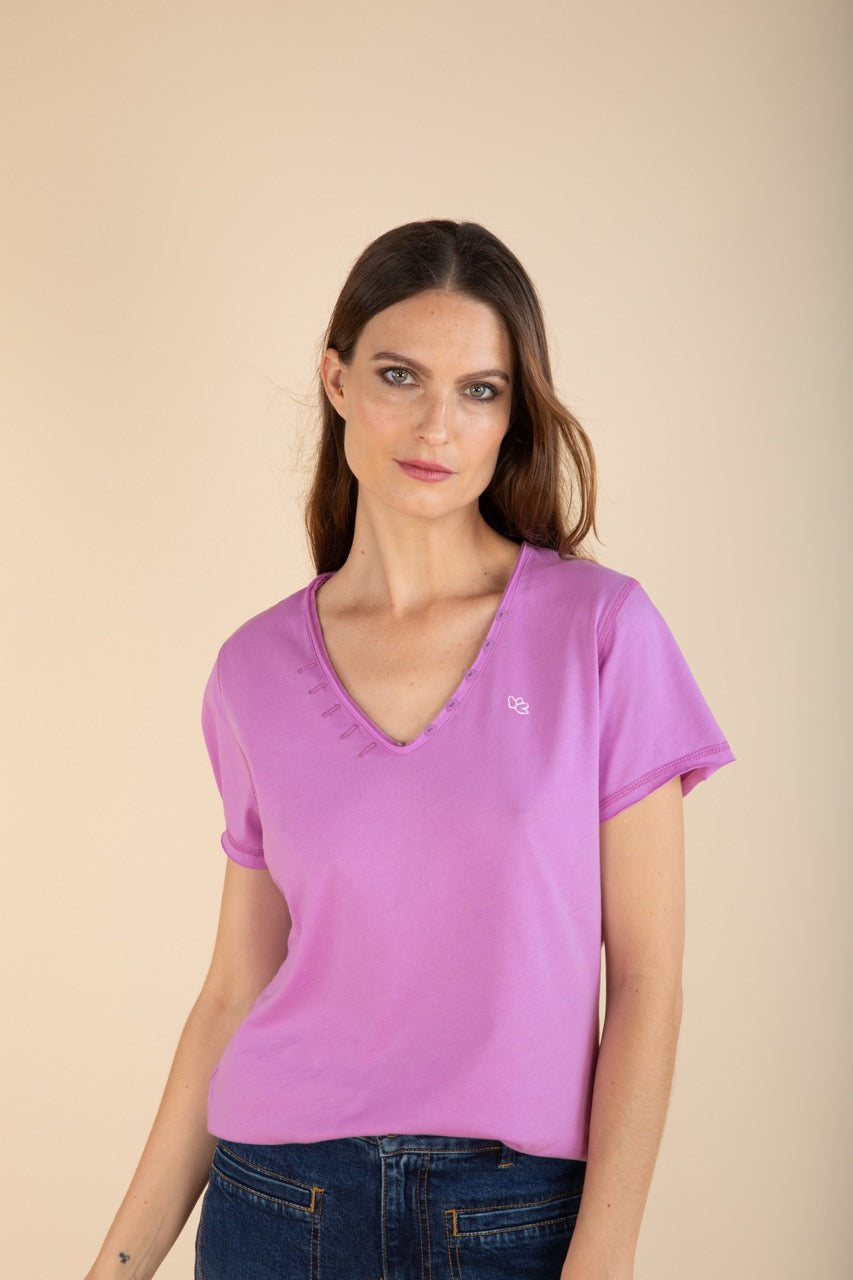 - V-Ausschnitt mit Knopf und Zierknopfleiste