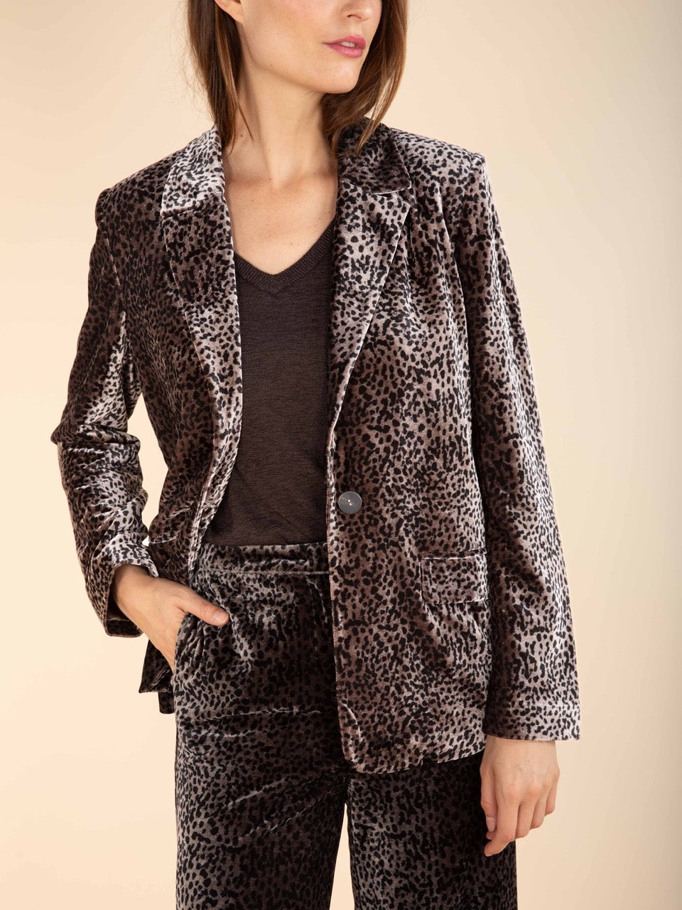 Bedruckter Blazer aus Samtstrick