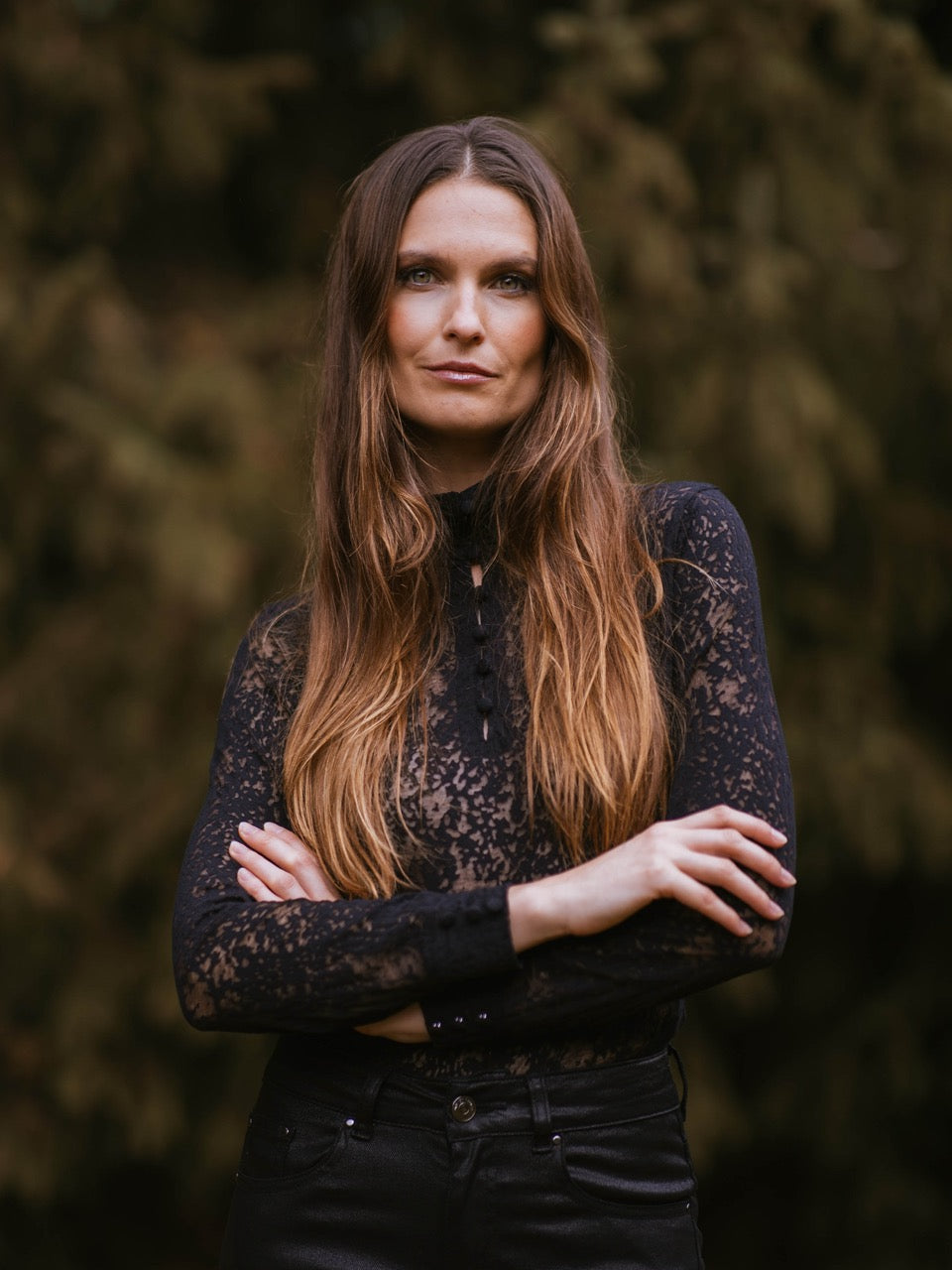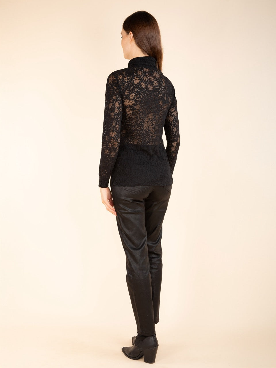 T-Shirt mit geknöpftem Stehkragen - Schwarz