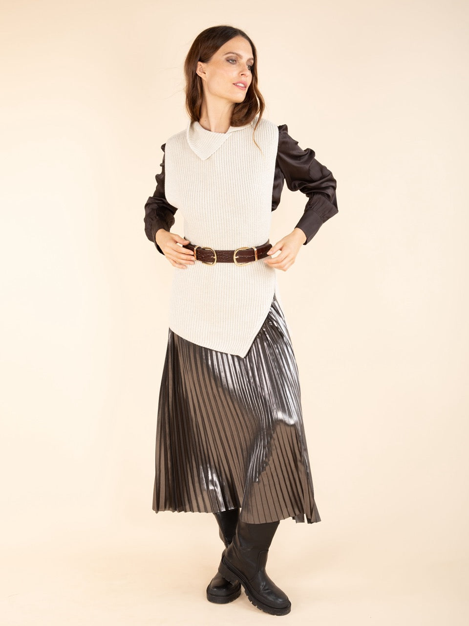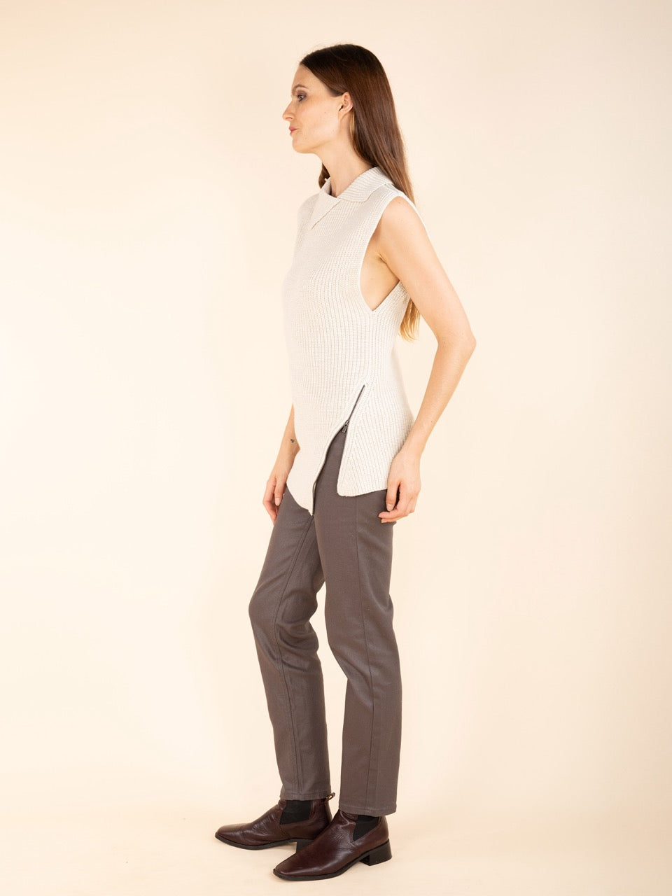 Ärmelloser Pullover mit Reißverschluss in Graubeige