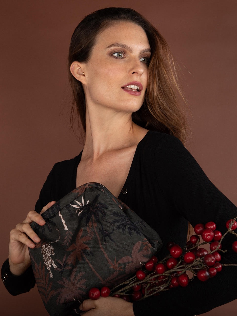 Entscheiden Sie sich für diese trendige Clutch, die dank des bedruckten Innenfutters und des kompakten Designs Stil und Funktionalität vereint.