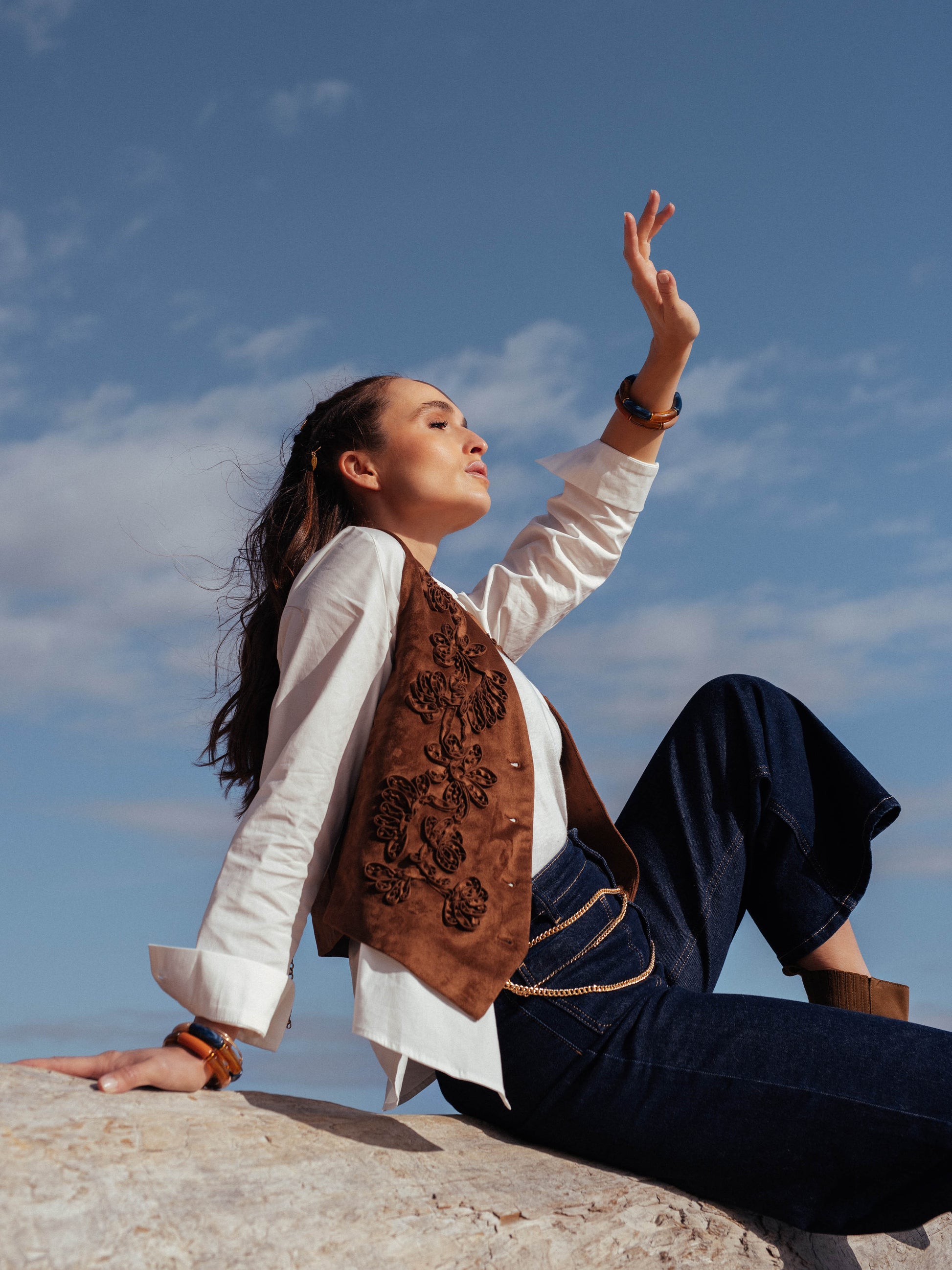 Maylis ist 1,72 m groß und trägt Größe 36.
