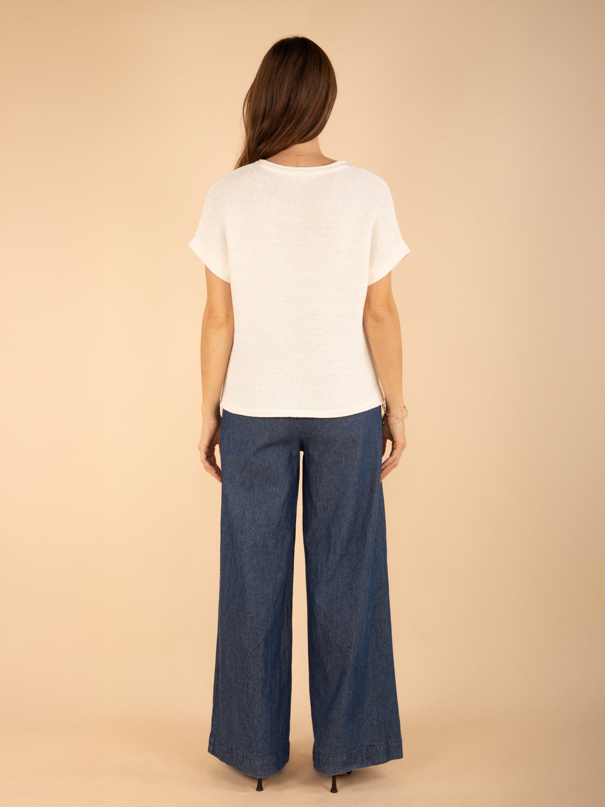 Wählen Sie diesen Pullover mit kurzen Ärmeln, der durch seine Ribbed-Verzierungen für eine moderne und puristische Silhouette sublimiert wird.