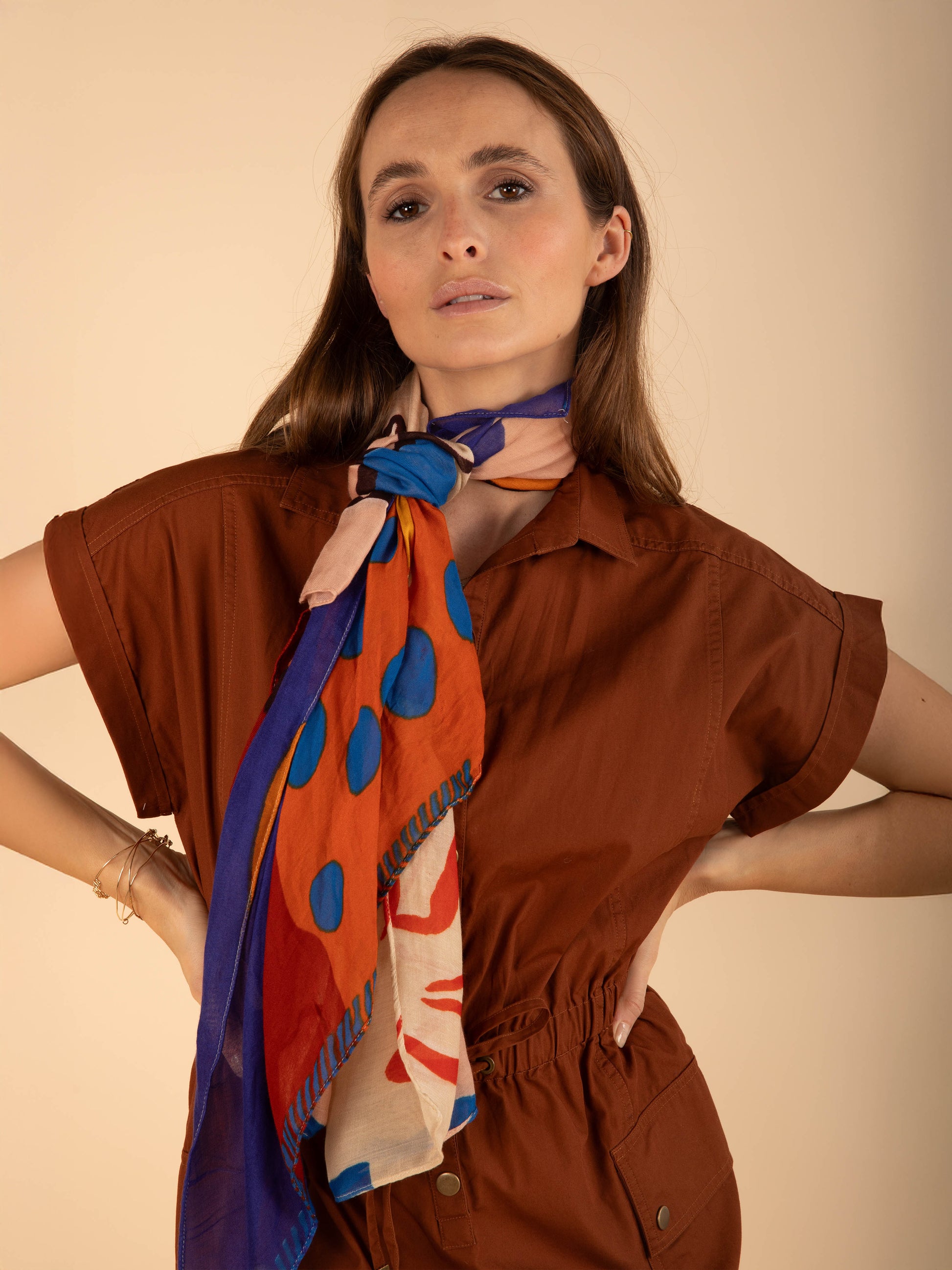 Ergeben Sie sich diesem bedruckten Summer-Schal, großformatig und leicht, perfekt um Ihre Outfits mit seinen bunten Motiven zu beleuchten.